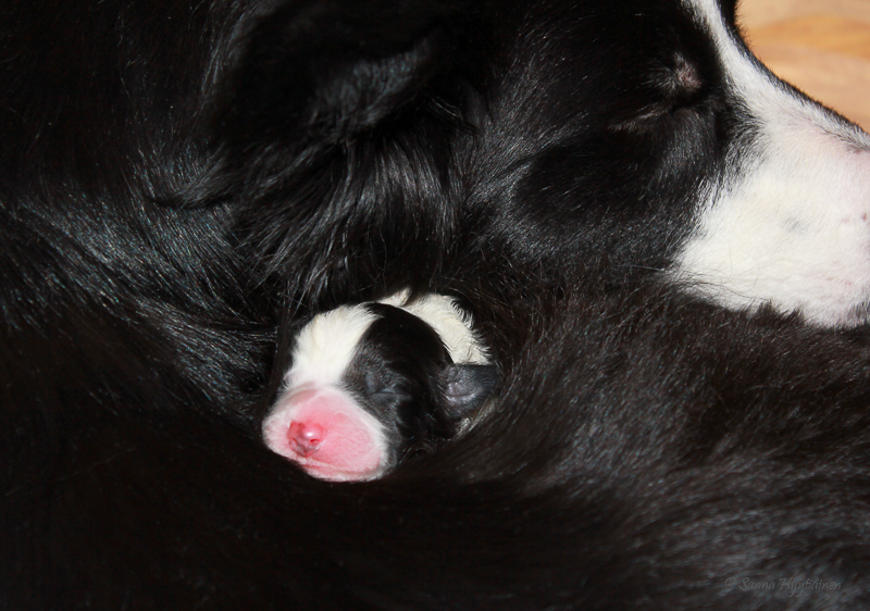 Synt.: 9.4.2008 Harrastukset: | Allista kuoriutui terve ja hyväpäinen koira joten samalla siitä tuli kasvatustyöni kantanarttu, eikä parempaa kantakoiraa olisi saattanut toivoa. Alli on melkoinen persoona, joka todellakin ilostuttaa päiviämme päähänpistoillaan. Täytyy sanoa, että vuosien varrella arvostukseni Allia kohtaan kasvanut hurjasti, eniten ehkä siksi, että Alli on erinomainen emo ja hoitaa pentunsa todella hyvin. Kaikki sen kolme kantoaikaa ja synnytystä ovat onnistuneet moitteetta ja se on hoitanut pentunsa hyvin antaumuksella. Hyvä ja terve emo on kyllä lottovoitto. Alli on hyvin rento tyyppi, se on koirasosiaalinen eikä koskaan haasta riitaa muiden koirien kanssa joten voin luottaa siihen maailmalla ihan täydellisesti. Alli siirtyi eläkkeelle harrastuksista parisen vuotta sitten kun lopetimme agilityn, jotain pieniä rallytoko juttuja tehdään silloin tällöin ihan omaksi iloksemme. Alli on eläkepäivänsä ansainnut.