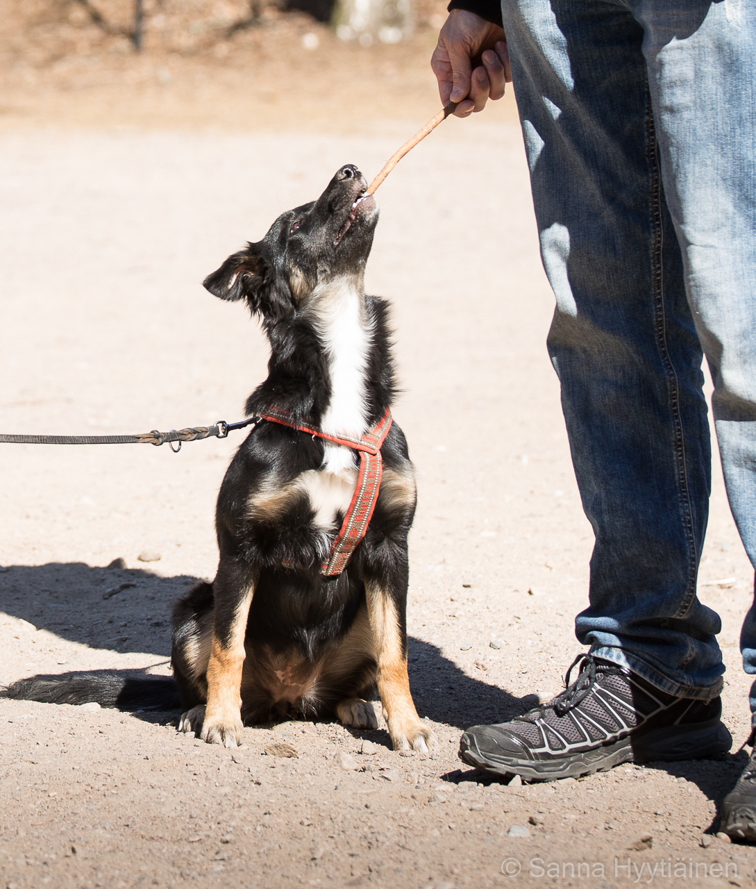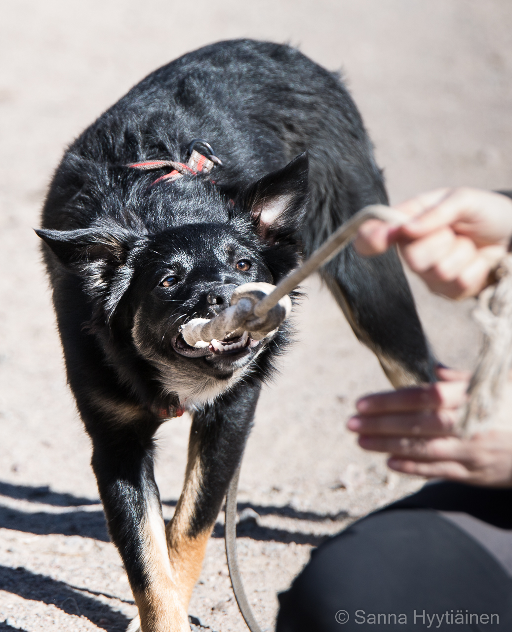 Lonkat: A/A Harrastukset: agility, toko, jäljestys | Saksantuonti Sansa on reilun 10 kk:n ikään mennessä ollut hyvin mielenkiintoinen, mutta ennen kaikkea varsin valloittava tapaus. Sansa on hurmannut meidän koko perheemme ja muutaman muun siinä sivussa. Sansa asuu Savonlinnassa vilkkaassa pikkulapsiperheessä perhe- ja harrastuskoirana kaverinaan kolmisen vuotta vanhempi bordercollieuros Kieppi. Sansan kanssa on tehty ja tehdään pohjia ainakin PK-jäljelle, TOKO:n ja paimennukseen, ja näistä ainakin kahdessa ensimmäisessä lajissa olisi tarkoitus startata myös kokeissa. Sansa on itsenäinen, saalisviettinen, taistelutahtoinen sekä sitkeä. Yhteistyön ja motivaation rakentaminen on vaatinut hieman malttia, mutta rauhassa tehty pohjatyö näyttäisi tuovan tulosta. Sansa ei ollut pentuna erityisen ahne, mutta etenkin ensimmäisten juoksujen myötä ruokahalu on parantunut huimasti, ja nykyisin ruokapalkka kelpaa treeneissä siinä missä lelukin. Sansalla on uskomattoman hieno kyky rauhoittua, ja ne, jotka eivät ole nähneet Sansan kiihkeämpää puolta, saattavat saada siitä hyvinkin rauhallisen vaikutelman. Vauhtia, intoa ja vimmaa ei kuitenkaan puutu, kun on kyse asiasta, jonka Sansa haluaa. Sansa on ihmisiä kohtaan hyvin avoin ja rakastaa rapsutuksia, sylittelyä ja huomiota. Se on toistaiseksi tullut hienosti toimeen myös toisten koirien kanssa, mutta stressaavassa tai epävarmassa tilanteessa se saattaa alkaa herkästi vahtia resurssejaan vähän turhan hanakasti. Ihmisiä kohtaan resurssiaggressiivisuutta ei ole missään vaiheessa esiintynyt pienimissäkään määrin, ja Sansa on ollut hyvin luotettava myös ihan pienten lasten kanssa. Sansa on siro ja pienehkö narttu. Se on pennusta saakka ollut elastinen ja kompakti pakkaus, ja kasvanut hyvin maltillisesti ja tasapainoisesti. Sansa on nopea ja pysyy hyvin itseään säkäkorkeudeltaan lähes 10 cm korkeamman Kiepin vauhdissa vaivatta maastossa kuin maastossa. Sansa ui kesällä mielellään ja nauttii ulkoilusta säässä kuin säässä. Sansaan on mahdollista tulla tutustumaan niin kotioloissa kuin treeneissäkin. ![]()